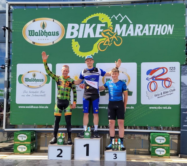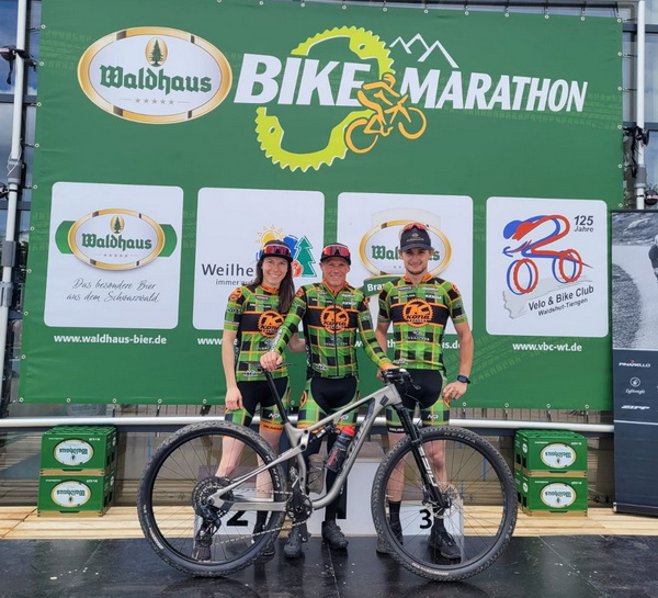 die Betreuer. Materialtechnisch gab es keinerlei Probleme. Ziegler bestritt das Rennen auf einem Carbon Fullsuspension Bike