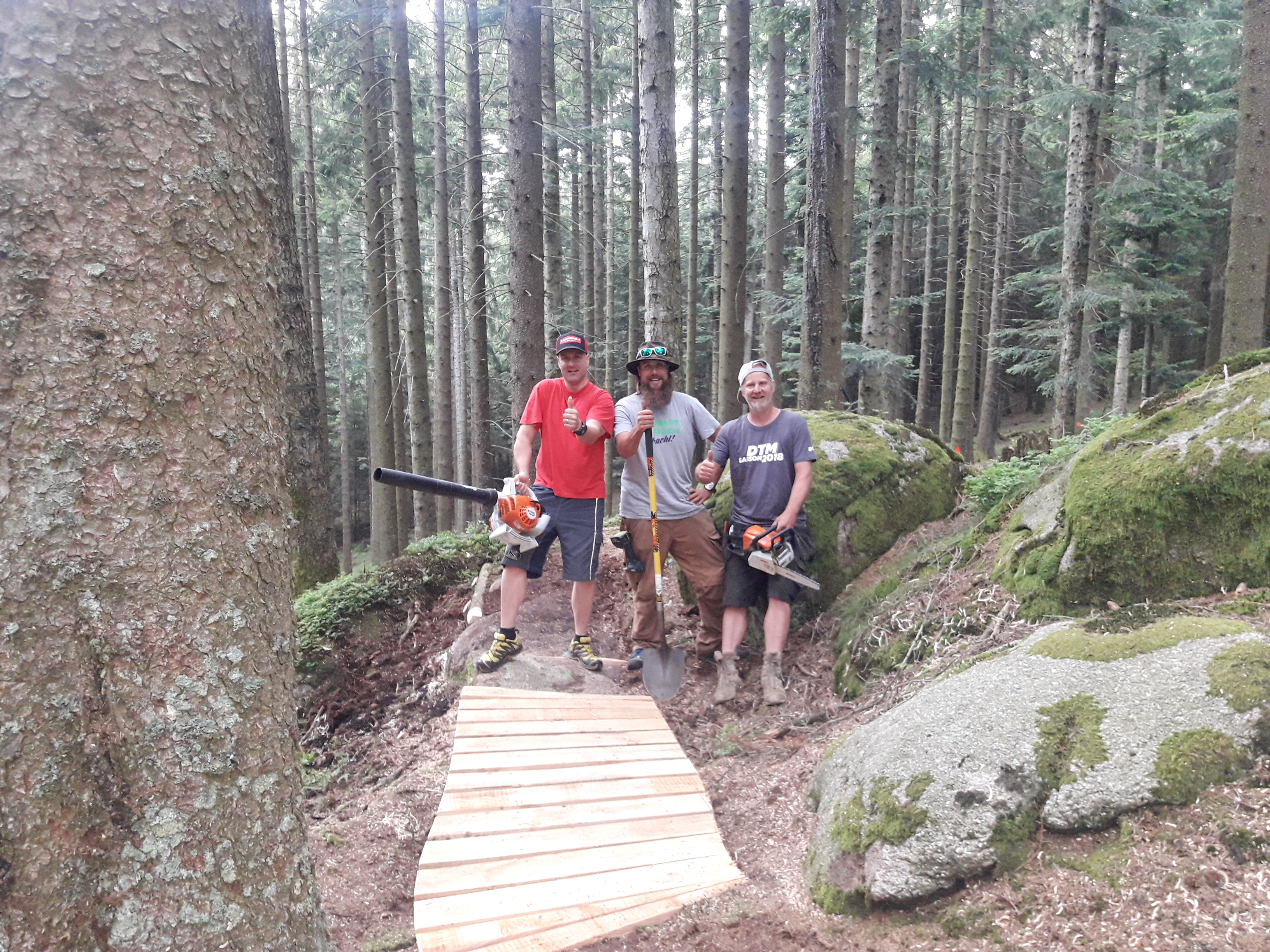 Ich holte die Crew dann nach Schonach und es begann die Planung und Umsetzung. In kürzester Zeit entstand dann der „Schonacher Trail Ride District“. Für diesen haben wir dann ein Logo sowie die Eingangsbögen aus Holz für die jeweiligen Trail Eingange entworfen. Hier war die Firma S+K Dienstleistungs GbR Axel Schätzle und Dennis Kaltenbach aus Schönwald sowie Timor Helmstädter, Motorsägen Künstler aus Villingen, beteiligt.